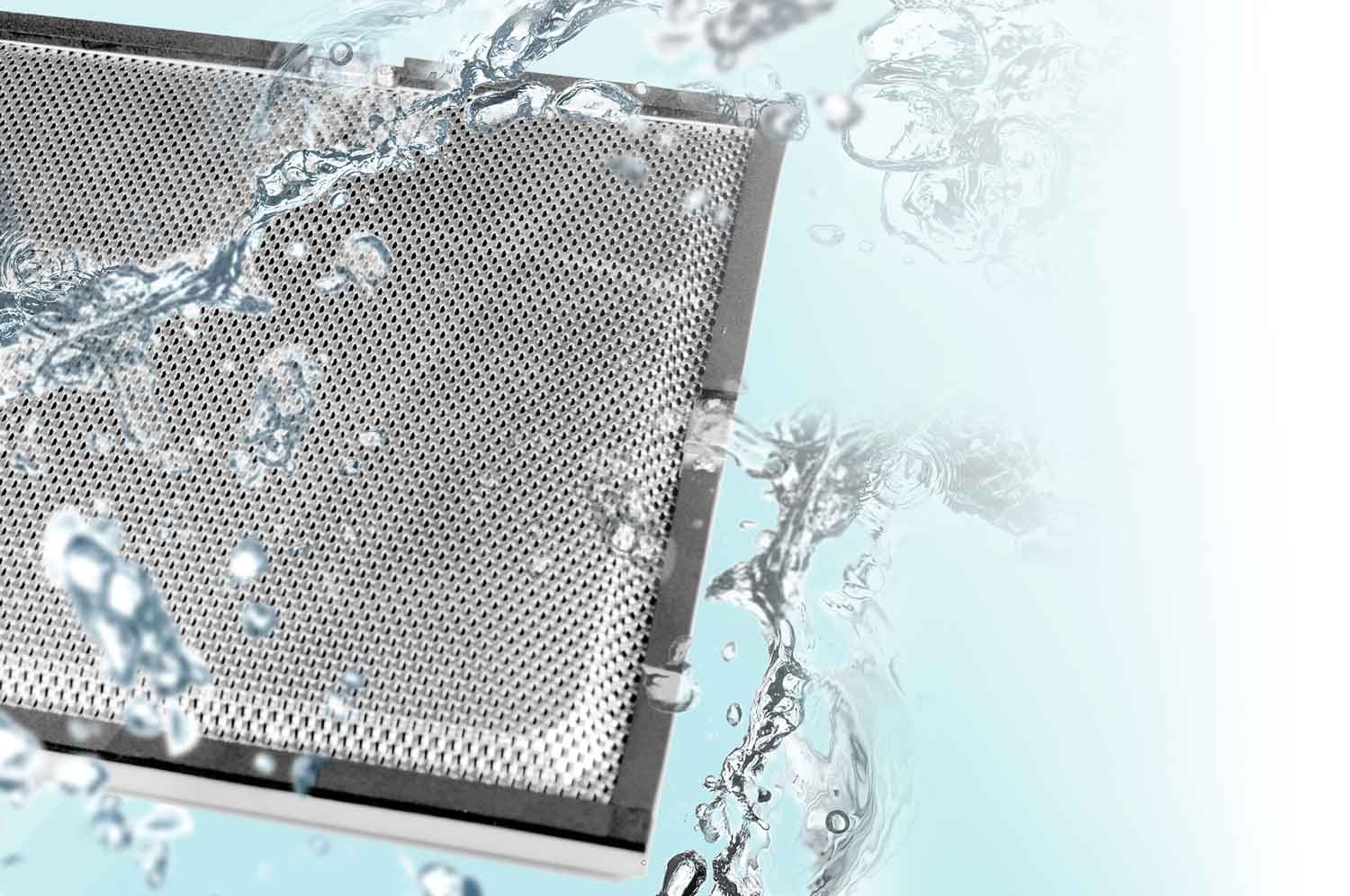 Ukryty pod klapką, wytrzymały filtr aluminiowy, wychwytuje kurz i tłuszcz, tym samym chroniąc wentylator i silnik okapu, zapewniając jeszcze dłuższą żywotność.