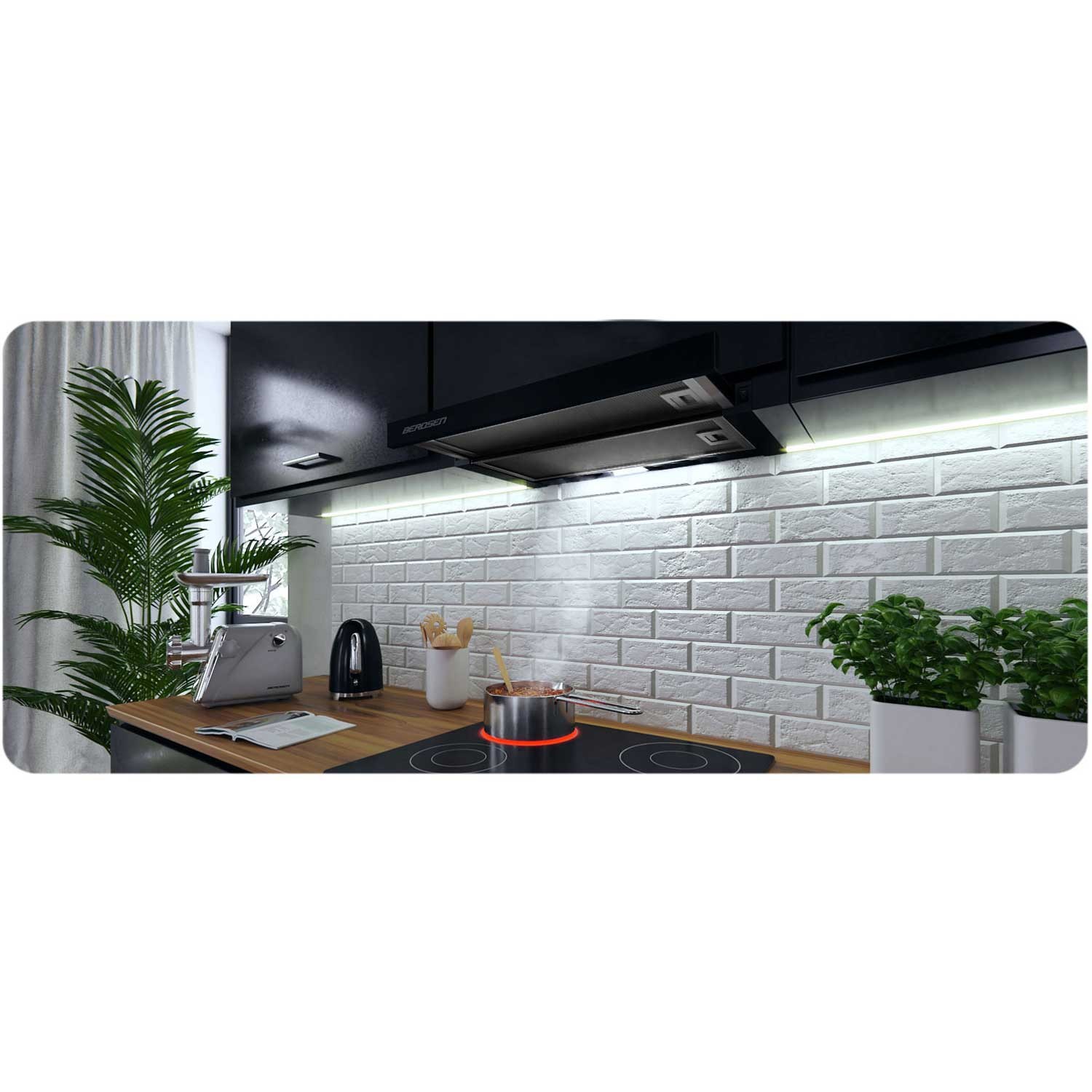 Wraz z okapem w Twojej kuchni pojawi się nowe źródło światła — idealnie doświetli wnętrze podczas gotowania.