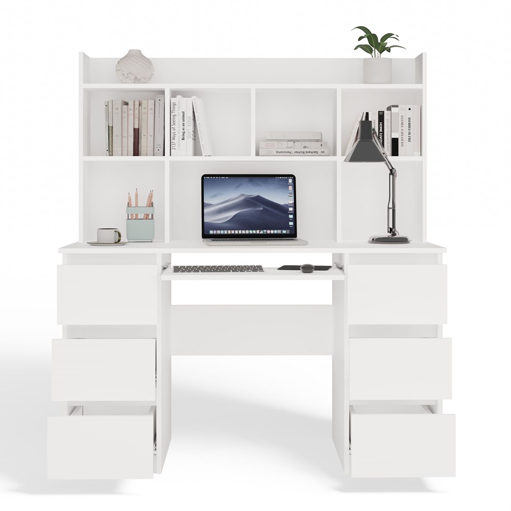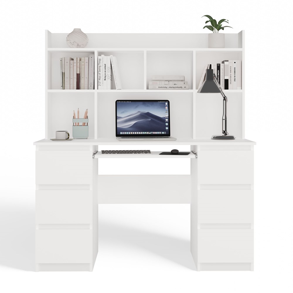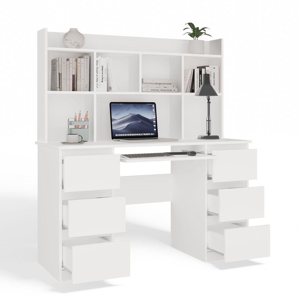 BIURKO KUBA Z NADSTAWKĄ BIAŁE ZESTAW 6 SZUFLAD PÓŁKI DO BIURA POKOJU PRACY