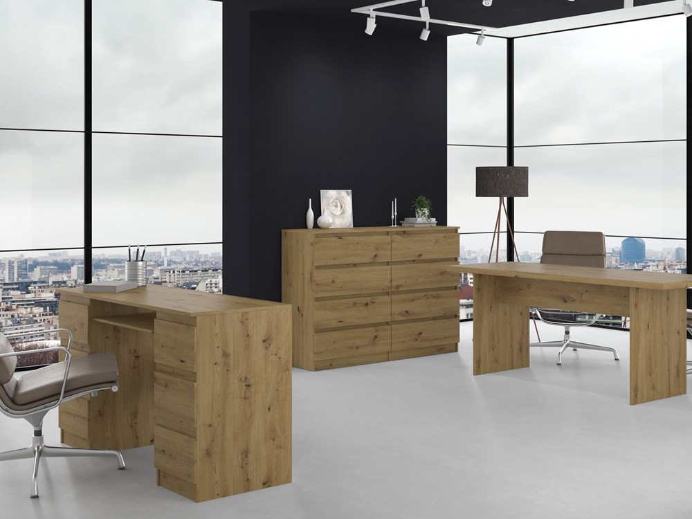 - Bezuchwytowe, fronty szuflad zapewniają wygodne użytkowanie i podkreślą modernistyczny charakter wnętrza.