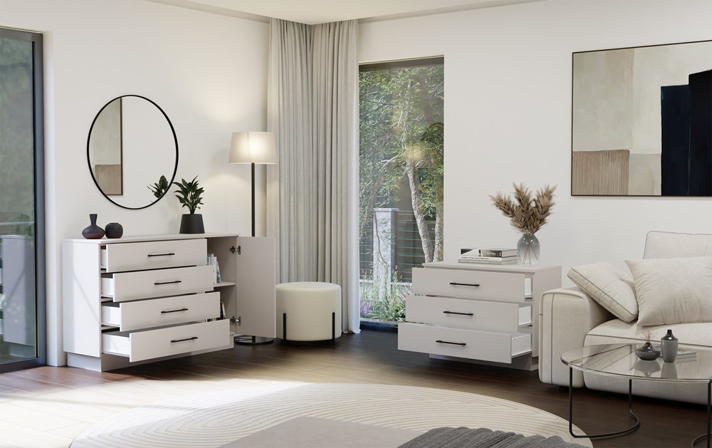 - 4 funkcjonalne szuflady – otwierane na klik dzięki systemowi TIP ON, idealne do przechowywania różnych akcesoriów