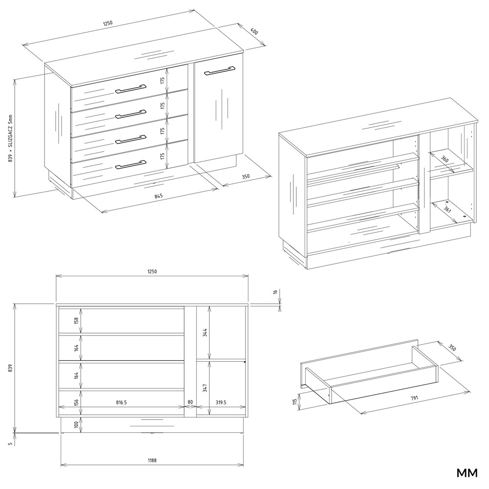 KOMODA AMBER 1D4S 125 CM KASZMIR BEŻ SZAFKA 1 DRZWI 4 SZUFLADY DO SYPIALNI