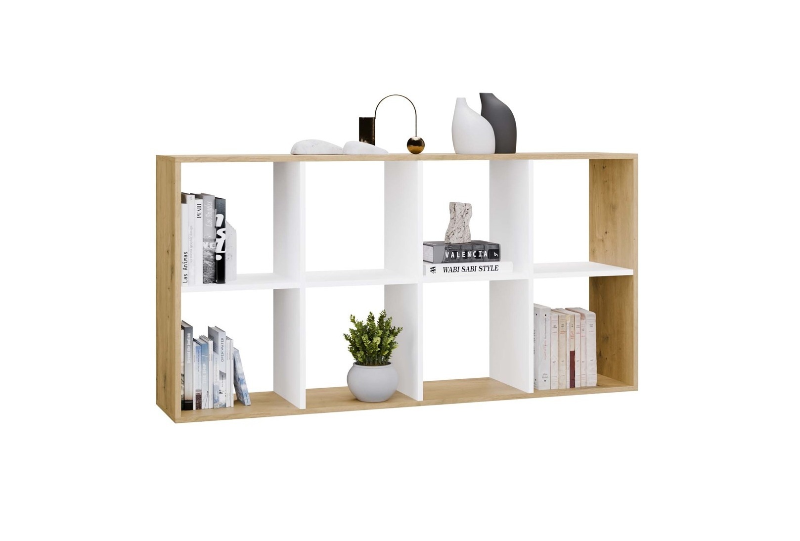 REGAŁ KOMOROWY MALAX 2X4 DĄB ARTISAN 8 PÓŁEK OTWARTY SZAFKA NA ZABAWKI
