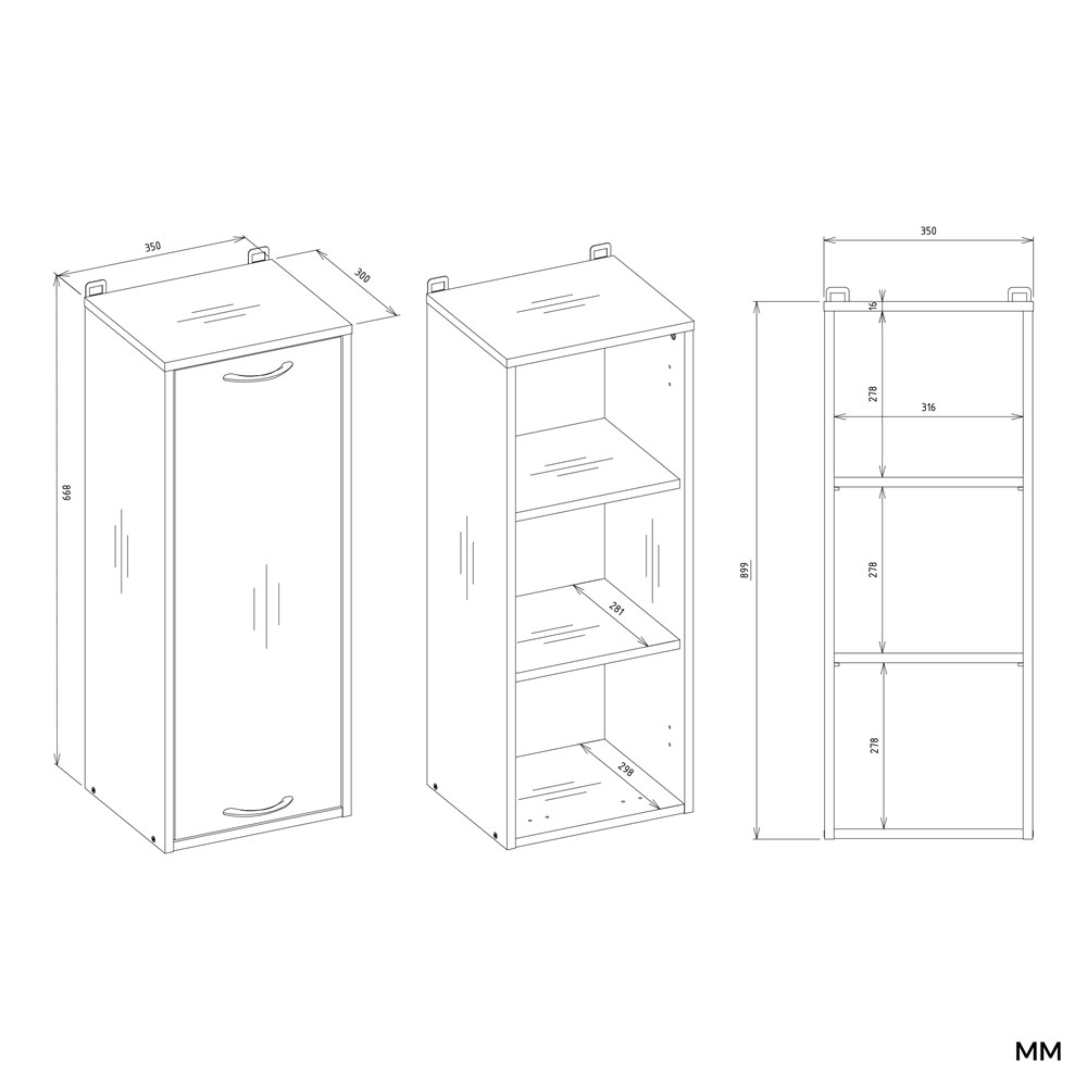 - Trzy praktyczne półki za drzwiami – pozwalają utrzymać porządek i wygodnie segregować przedmioty