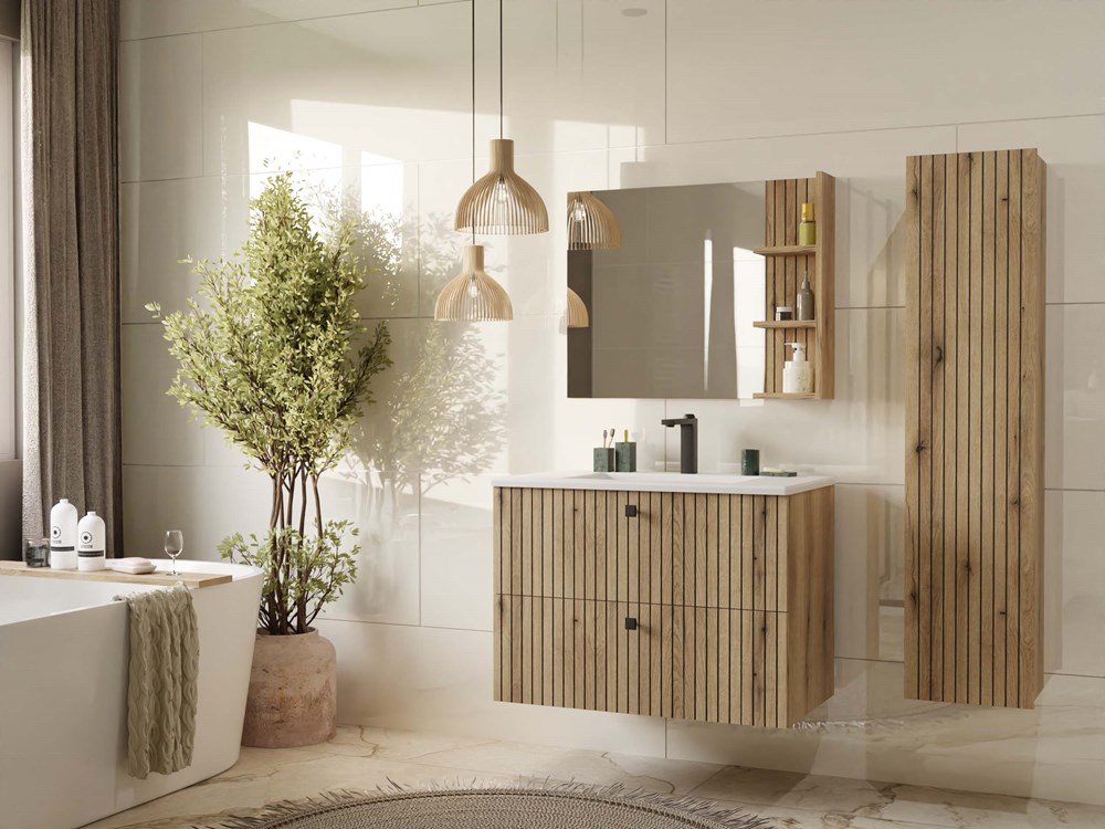 SZAFKA POD UMYWALKĘ TIGO 80 2S DĄB EVOKE RYFLOWANY FRONT + UMYWALKA
