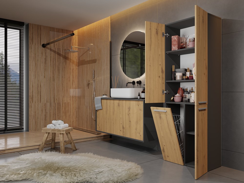 SZAFKA REGAŁ 60 SŁUPEK NEL DD 1K KOSZ ANTRACYT DĄB ARTISAN