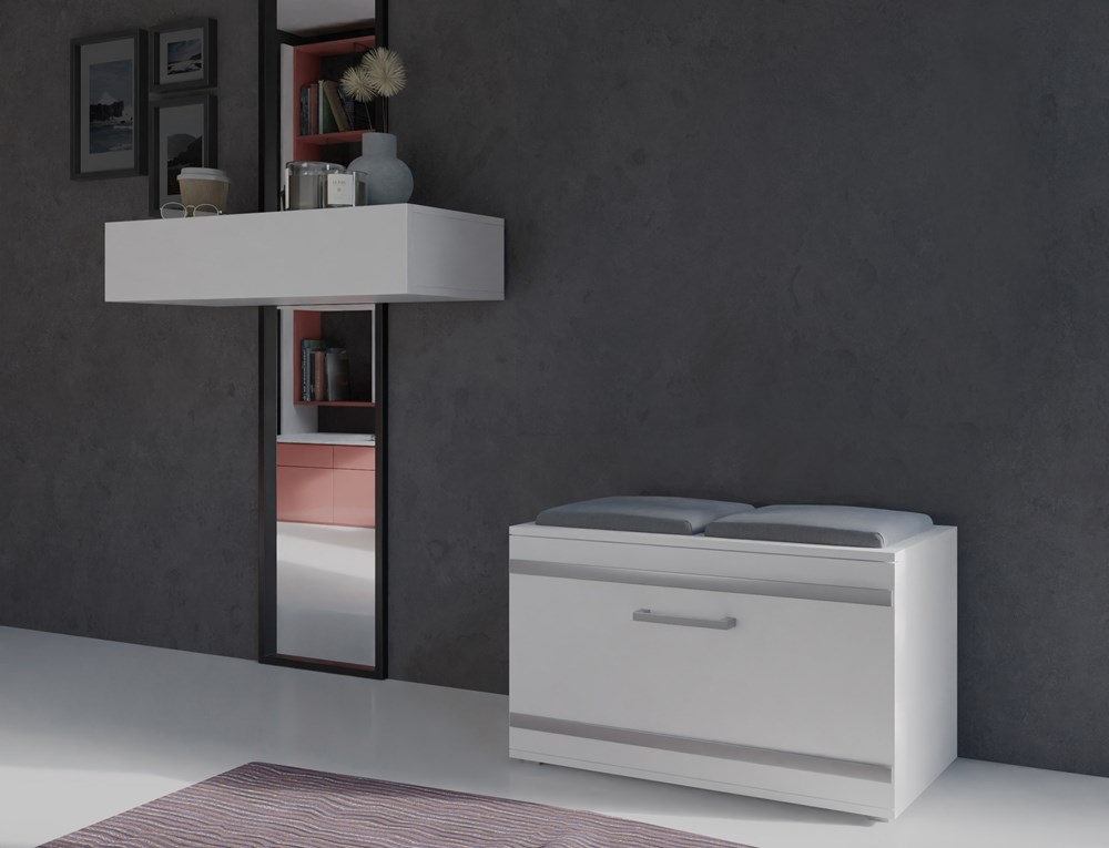 SZAFKA NA BUTY SIEDZISKO SCHOWEK OPAL BIEL MAT.
