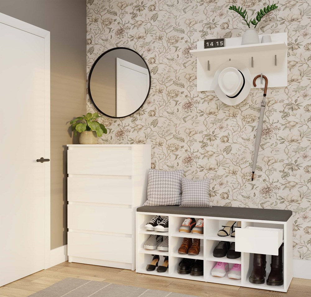SZAFKA NA BUTY TALLIN BIAŁA Z SIEDZISKIEM I SZUFLADĄ 110x46x35 CM KORYTARZ