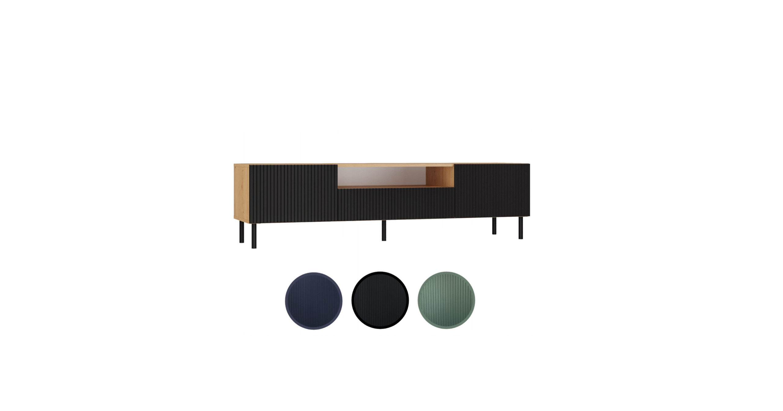 NNOWOCZESNA SZAFKA RTV KAMA 160 SLIM LAMELE DĄB ARTISAN / CZARNY MAT