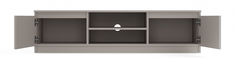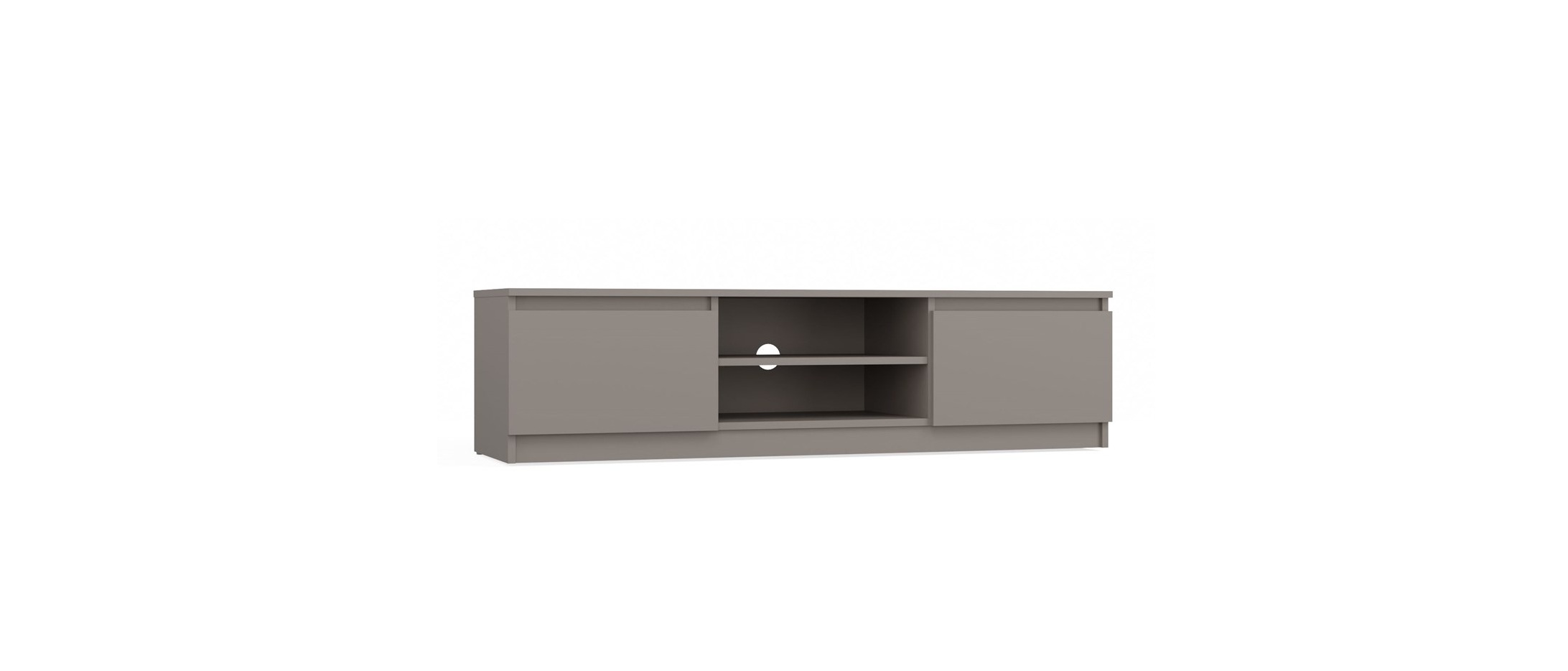 - Otwarta półka pozwala na wygodne ustawienie sprzętu RTV, a umieszczony w jej plecach otwór ułatwia dyskretny montaż okablowania.
