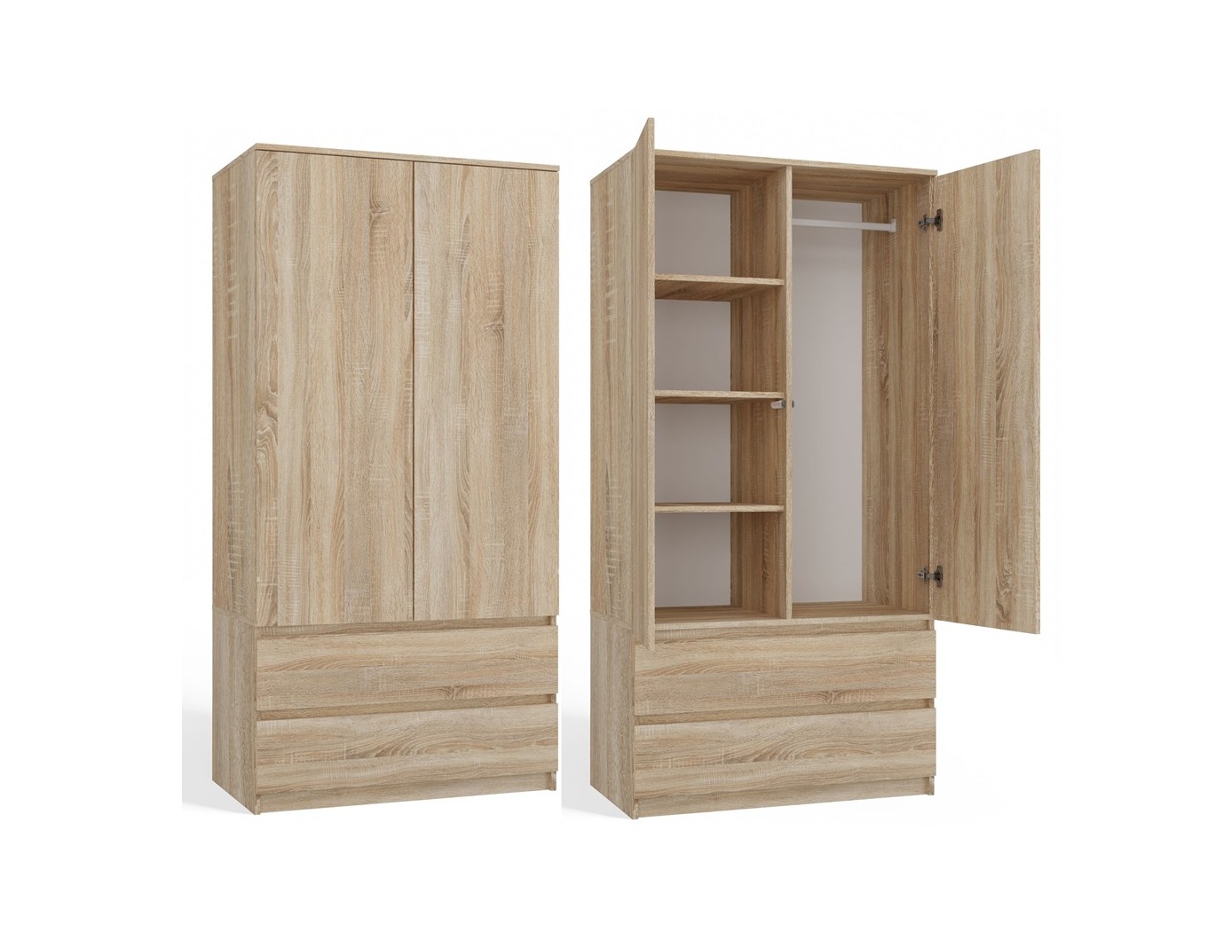 SZAFA GARDEROBA SS-90 MALWA 2 DRZWI 2 SZUFLADY DĄB SONOMA SYPIALNIA, POKÓJ