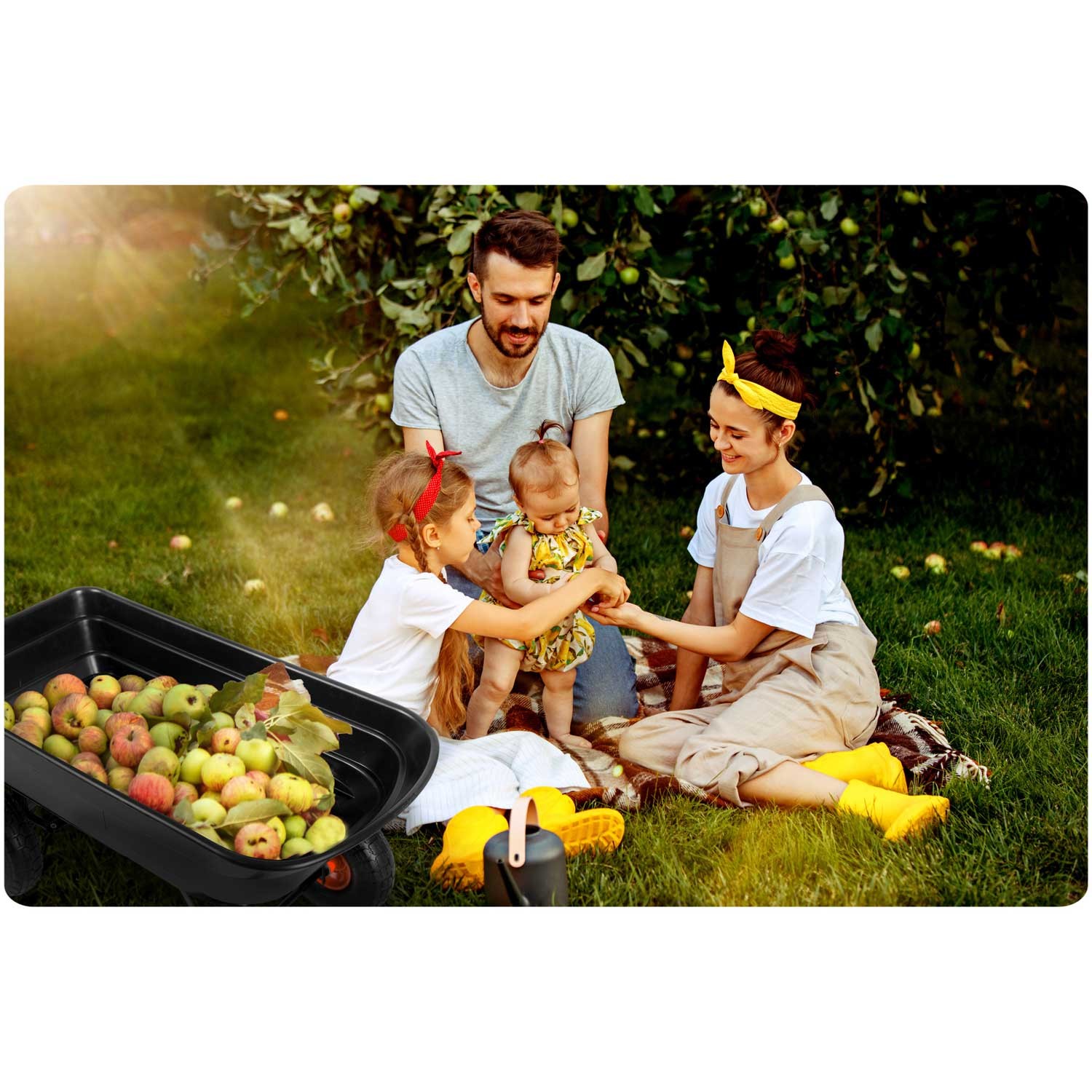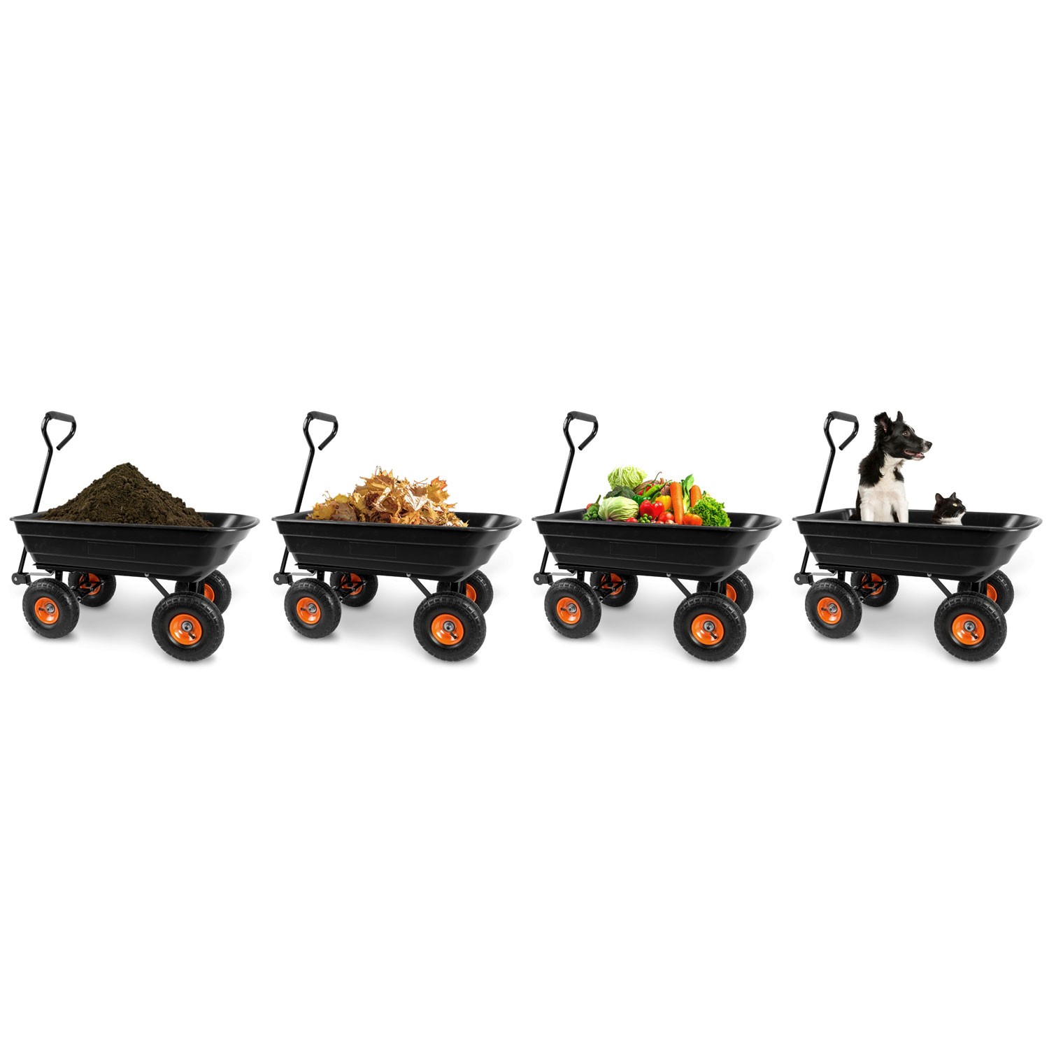 - Funkcjonalność 3w1 – wózek, taczka i wywrotka.