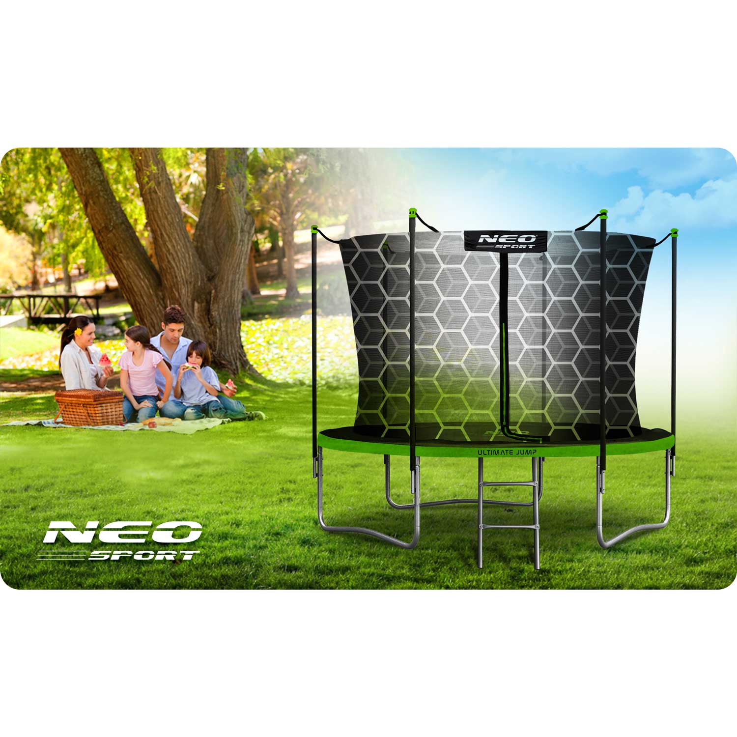 TRAMPOLINA OGRODOWA 10ft/312cm Z SIATKĄ WEWNĘTRZNĄ I DRABINKĄ NEO-SPORT