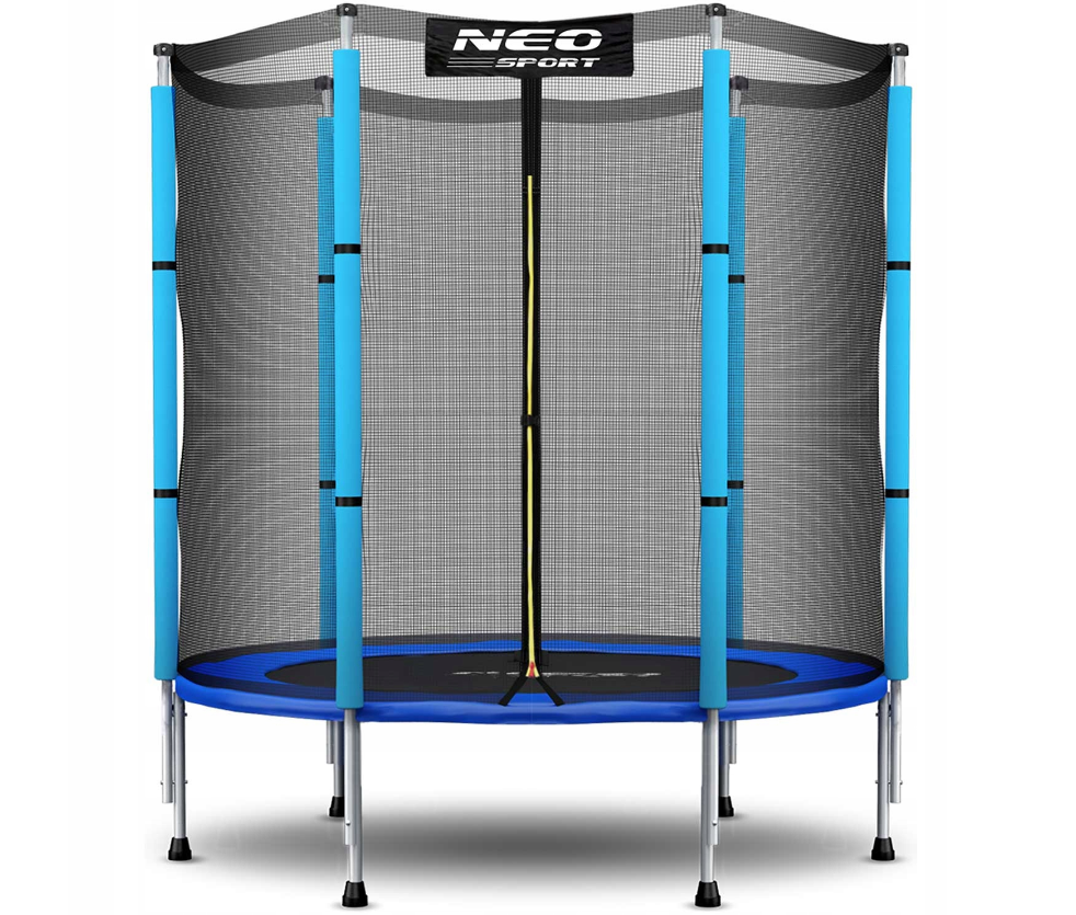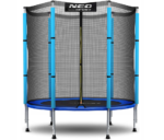 Trampolina Neo-Sport to bezpieczny i stabilny sprzęt sportowy o średnicy 140 cm. Siatka zabezpieczająca wyposażona jest w trwały suwak błyskawiczny. Słupki stelażu obito grubą gąbką, natomiast sprężyny mocujące matę osłonięto specjalnym kołnierzem ochronnym, który posiada wewnątrz piankę. Takie rozwiązania gwarantują bezpieczne korzystanie z trampoliny i ochronę przed urazami mechanicznymi.